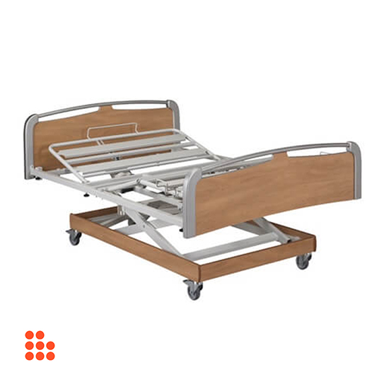 También existe la posibilidad de elegir la cama articulada con carro elevador, que permite levantar todo el somier en bloque o bajarlo, según la necesidad del cuidador. El colchón puede ser tanto viscoelástico como de látex, nunca de muelles ya que no permitiría el buen funcionamiento de los sistemas de articulación.