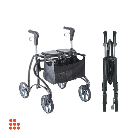 El rollator es un andador de 3 o 4 ruedas que viene a suplir al andador tradicional, no solo por el hecho de incluir ruedas sino también por la incorporación o bien del respaldo o del asiento, en la mayoría de ocasiones. El rollator requiere una fuerza mínima para arrastrarlo gracias a las ruedas delanteras y traseras. Además, dispondrás siempre del asiento y respaldo para los descansos y por último, la cesta o bolsa que facilita el transporte de pequeños objetos. Los modelos superiores incluyen freno de mano para controlar la velocidad o el movimiento durante las paradas o en terrenos inclinados.